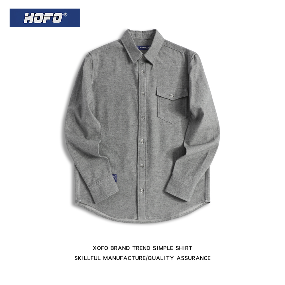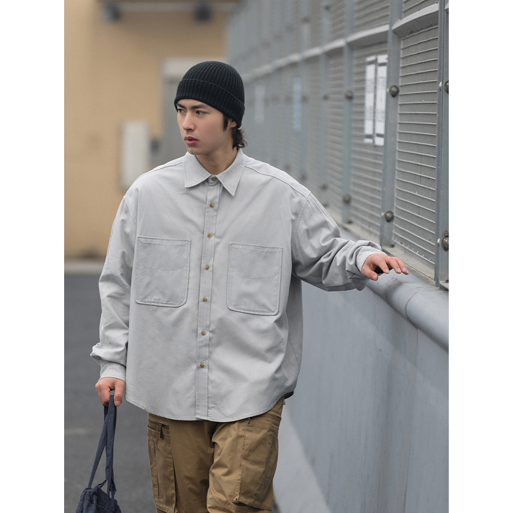 工装风琴袋式大口袋复古衬衫男外套纯棉斜纹布水洗美式长袖衬衣潮