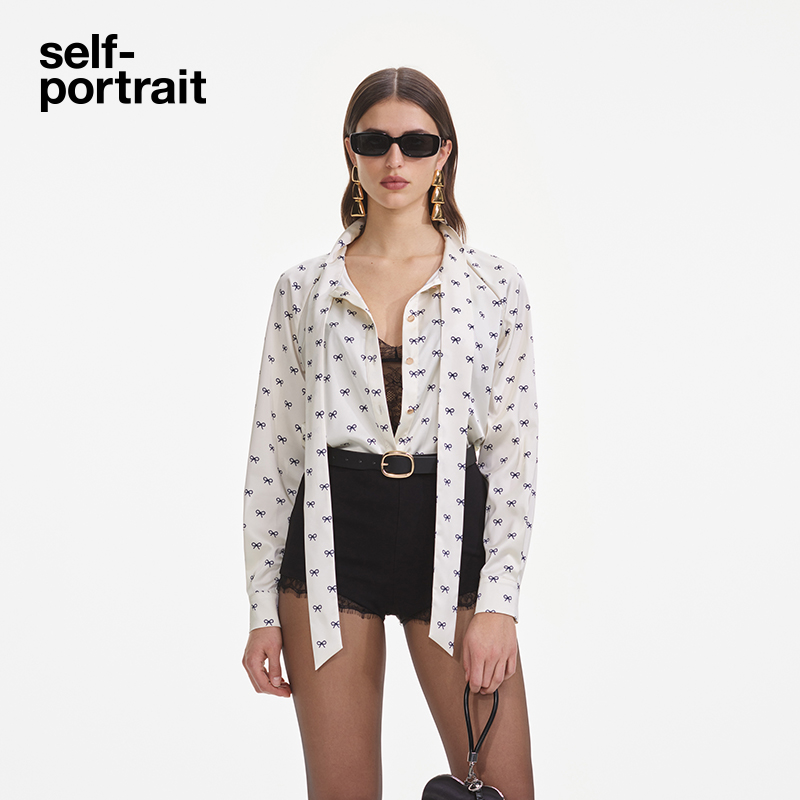 self-portrait 2025春夏白混色蝴蝶结印花复古衬衫上衣