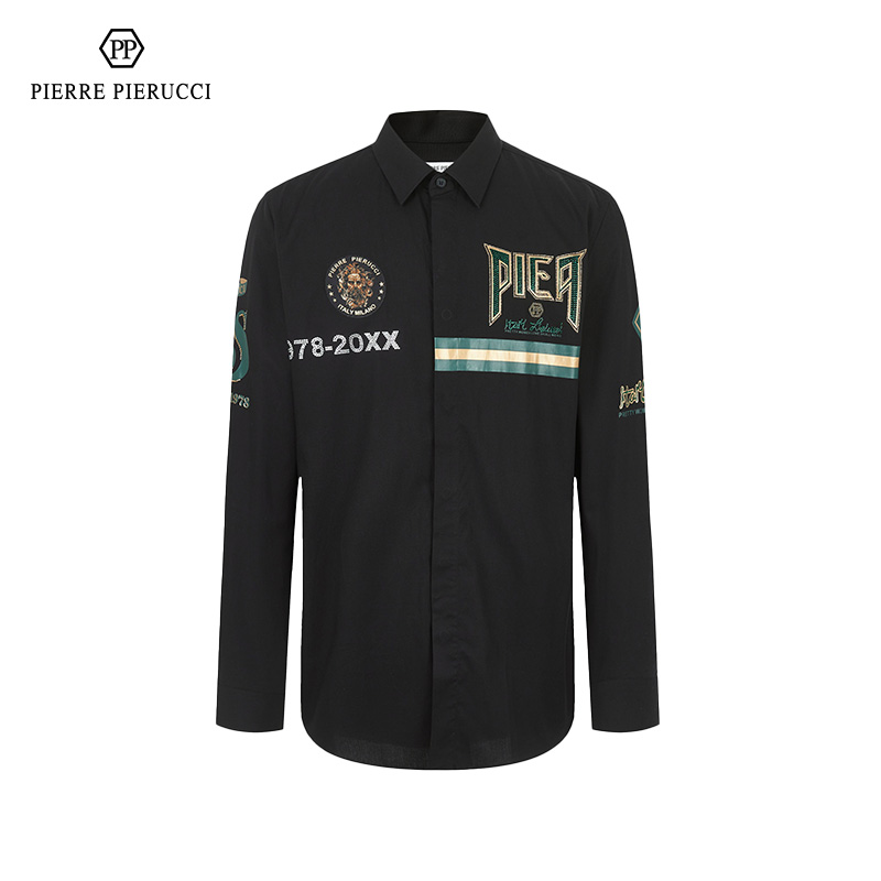 潮牌时尚男士韩版宽松字母刺绣翻领牛仔长袖衬衣春季新款复古衬衫