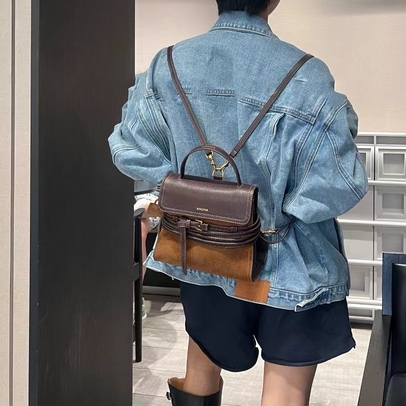 FOFO小号牛皮双肩包女设计师高级感小众通勤真皮单肩斜挎手提背包