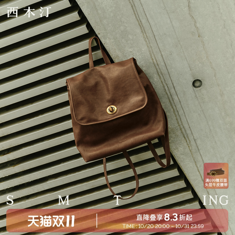 西木汀随风 小众设计牛皮背包女式2025新款包包大容量双肩旅行包