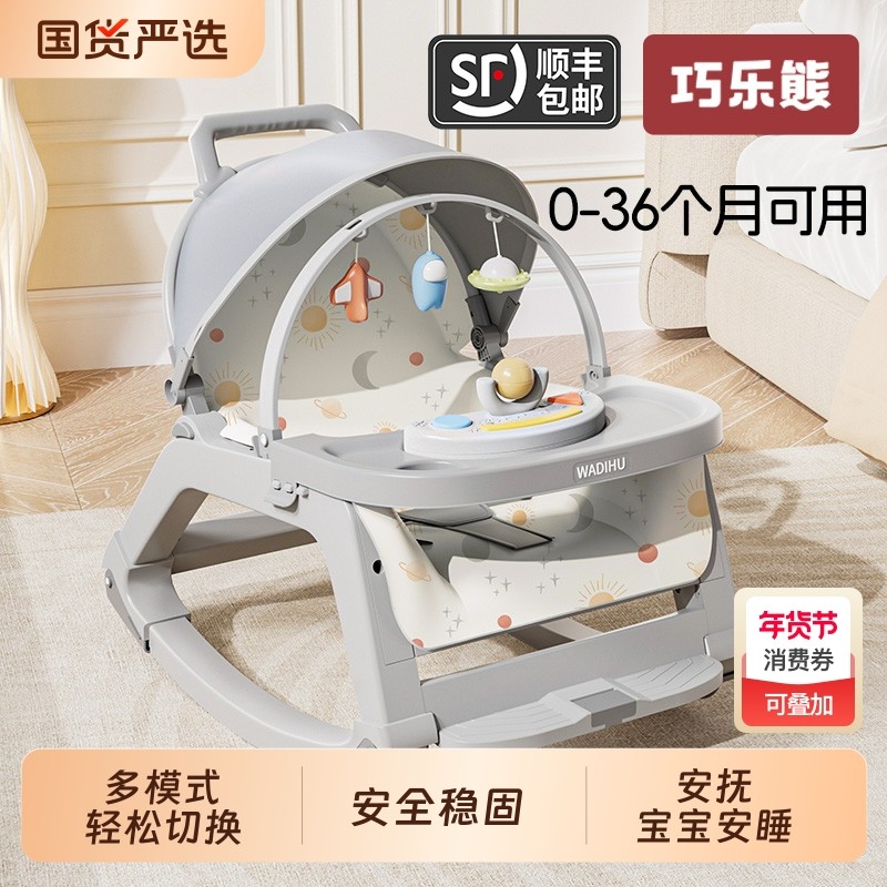 巧乐熊哄娃神器婴儿摇摇椅儿童躺椅摇摇床带娃多功能收纳架攀爬架