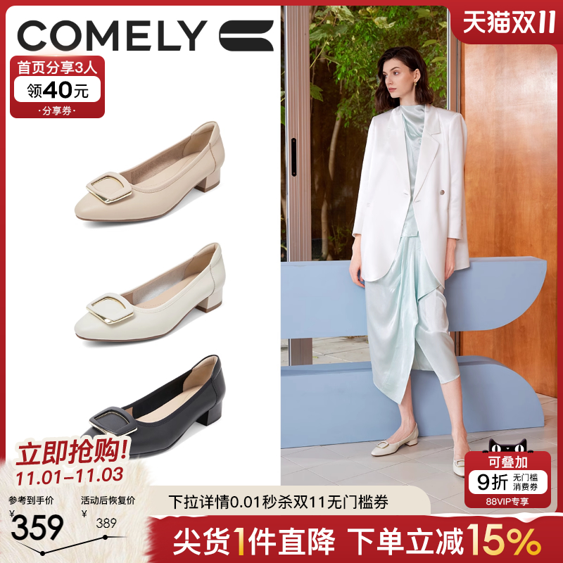康莉comely方扣细跟高跟鞋女百搭通勤浅口单鞋 159元起不定时更新