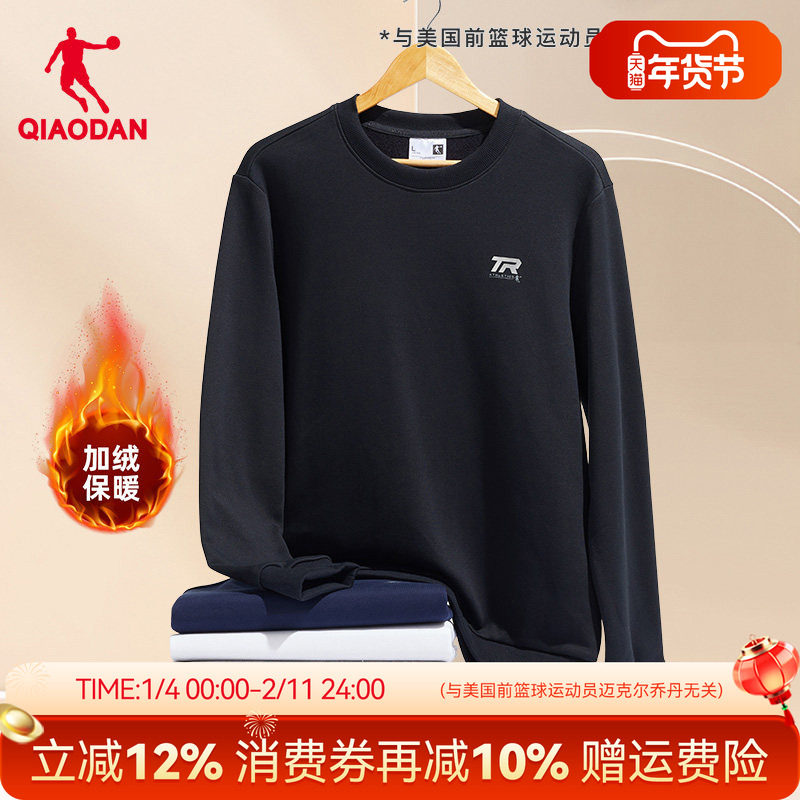 中国乔丹卫衣男加绒2024秋冬冬宽松抓绒衣内胆保暖上衣圆领套头衫