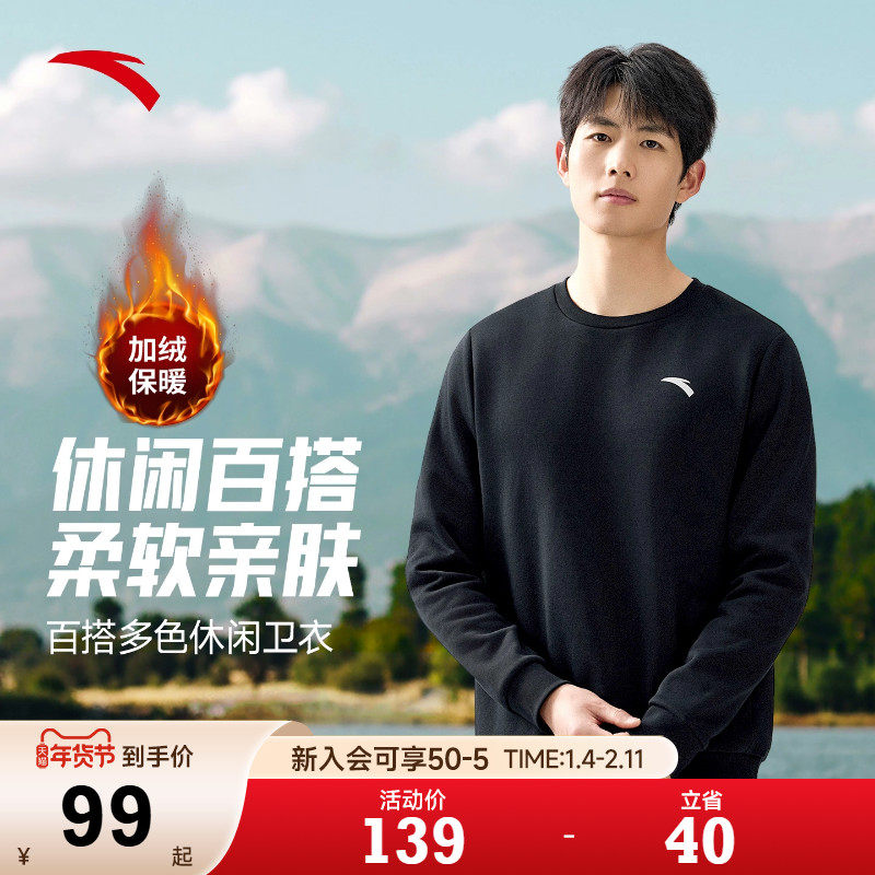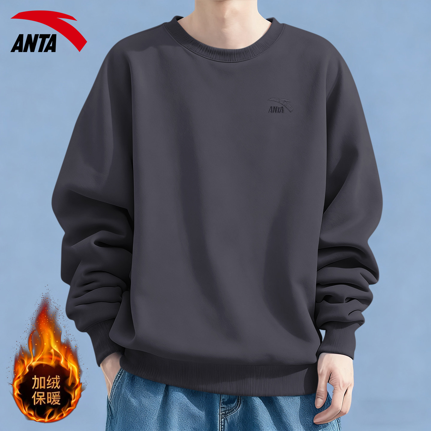 安踏卫衣男加绒保暖官网旗舰2025新款圆领运动长袖秋冬加厚套头衫