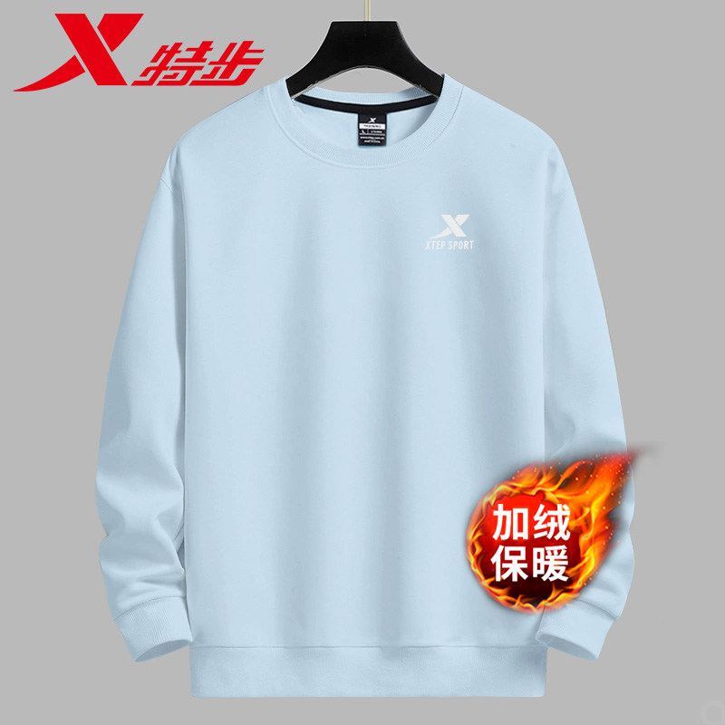 特步时尚潮流正品卫衣男加绒加厚卫衣冬季保暖打底圆领男长袖T恤