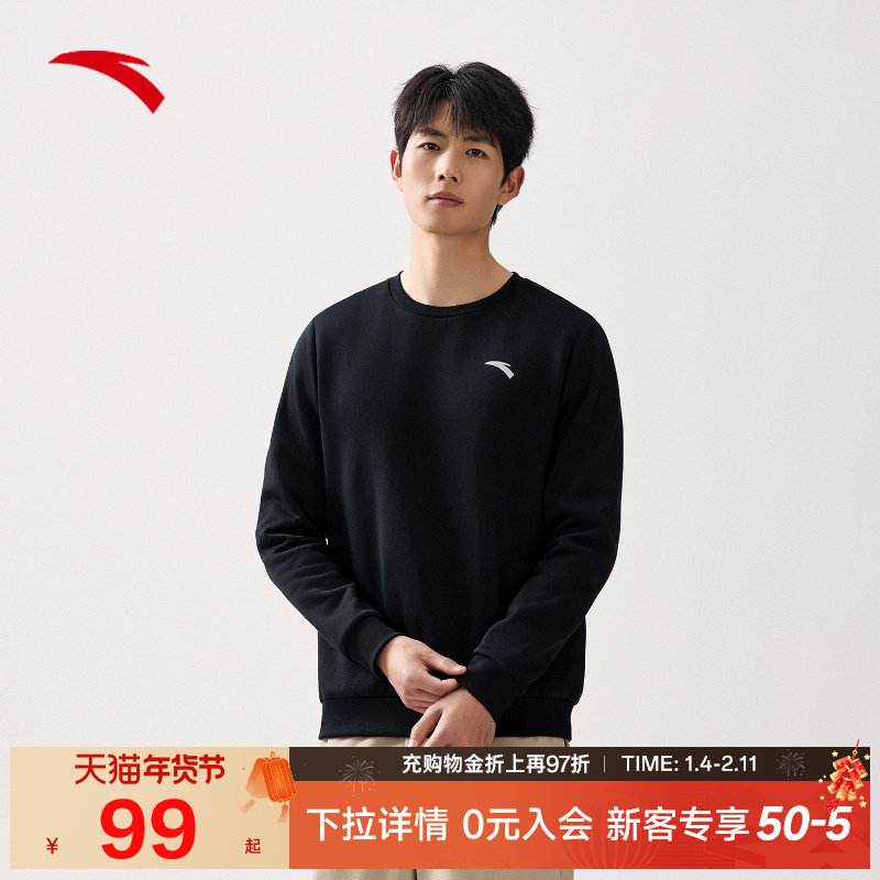 安踏卫衣男加绒保暖长袖2026春季新款运动上衣官网旗舰百搭套头衫