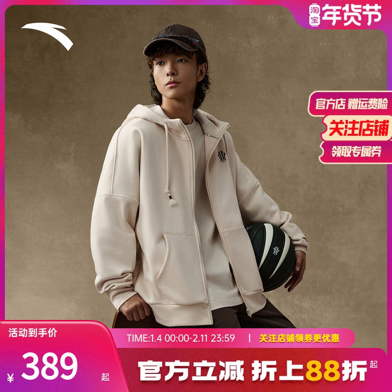 安踏卫衣男加绒连帽凯里欧文美式2纯棉运动外套头开衫172541708N