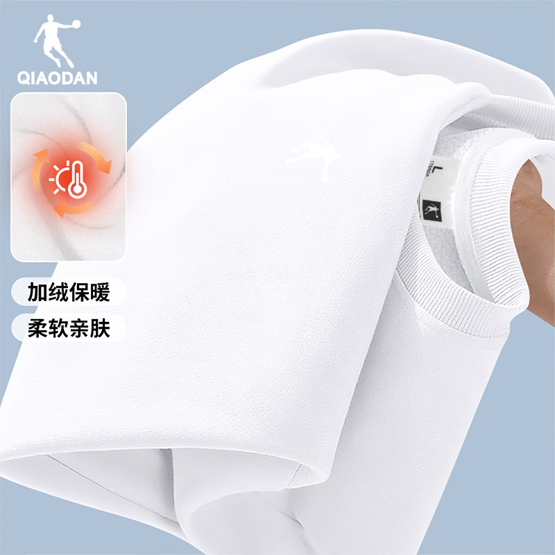 乔丹针织圆领卫衣男加绒保暖2025秋冬新款男士运动休闲上衣打底衫