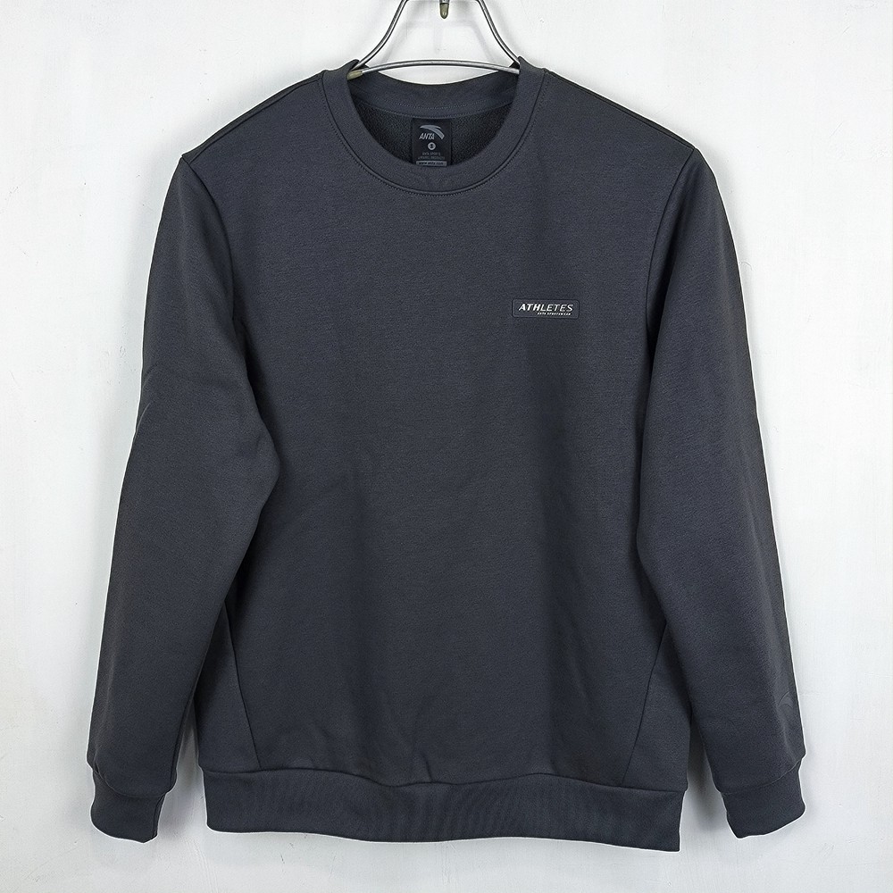 安踏休闲长袖卫衣男冬季加绒圆领套头衫宽松针织运动上衣简约男装