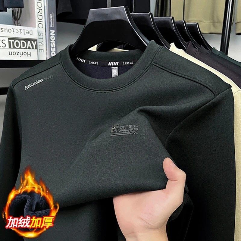 安踏运动卫衣男加绒加厚保暖打底衫内搭2025冬季新款圆领纯色长袖