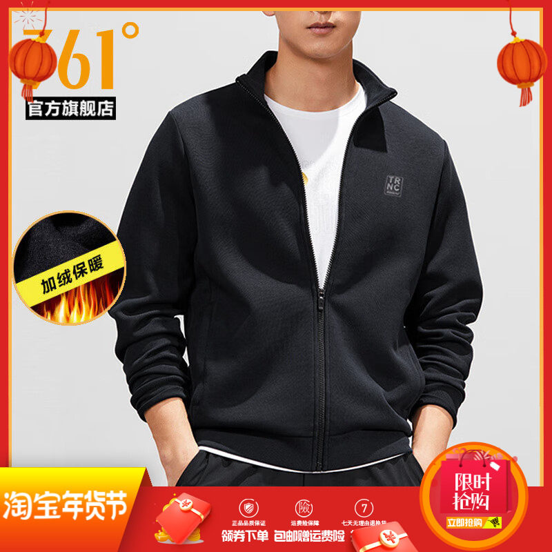 361度开襟卫衣男加绒2024冬季新款时尚印花防风保暖加厚运动外套
