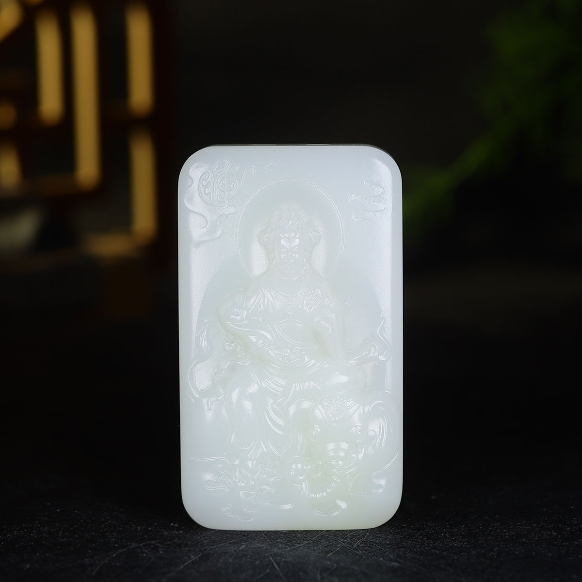 (古晨珠宝)新疆和田玉羊脂白玉普贤菩萨挂件守护神吊坠玉坠101g