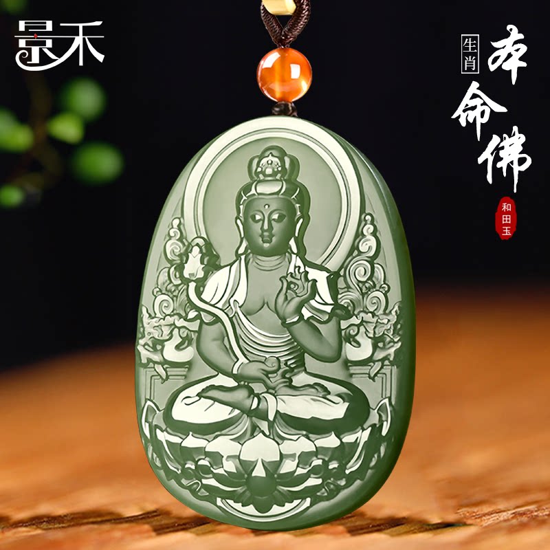 和田玉青玉本命佛十二生肖吊坠虚空藏普贤文殊观音菩萨项链男女款