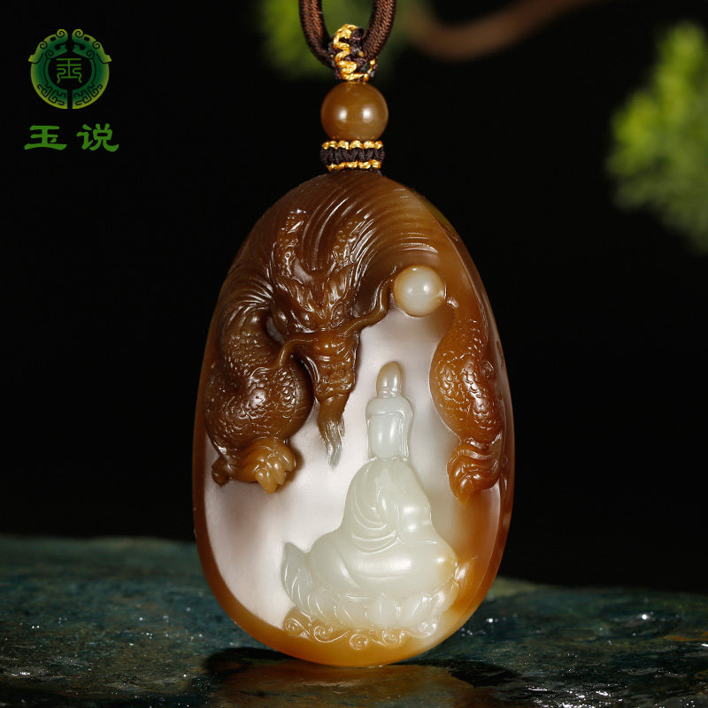 玉说和田玉观音吊坠男款玉坠糖青白玉御龙无相观自在菩萨玉石挂件