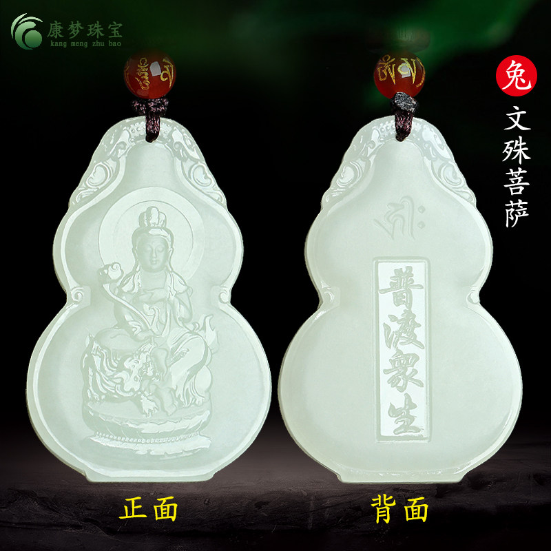 和田玉羊脂白玉文殊菩萨本命佛吊坠男生肖兔本命年玉石玉坠玉牌女