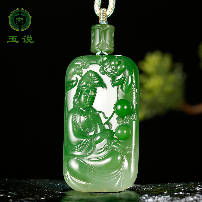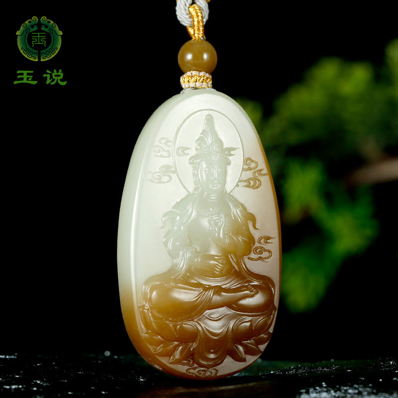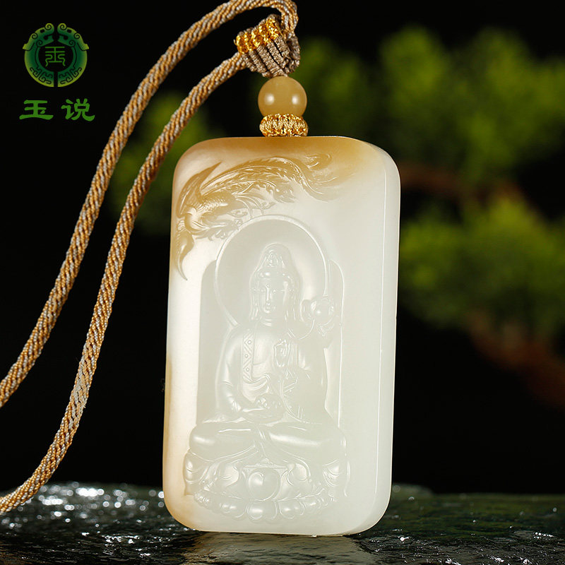 玉说和田玉观音吊坠男款玉坠方牌坐莲菩萨玉佩玉石挂件附证书DY