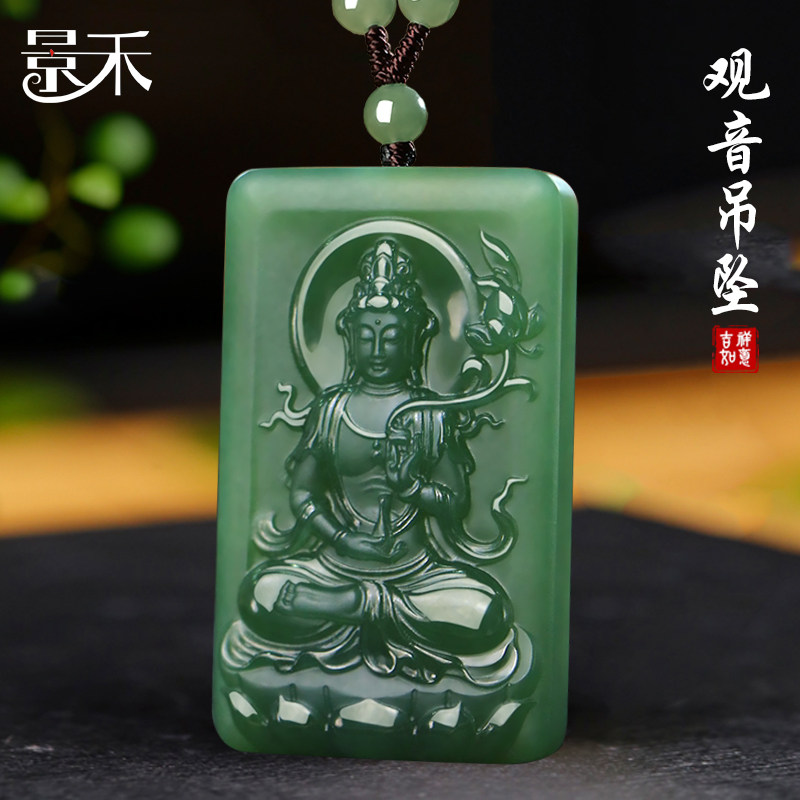 和田玉青玉湖水绿净瓶观音吊坠男新疆玉石菩萨玉坠项链女平安玉牌
