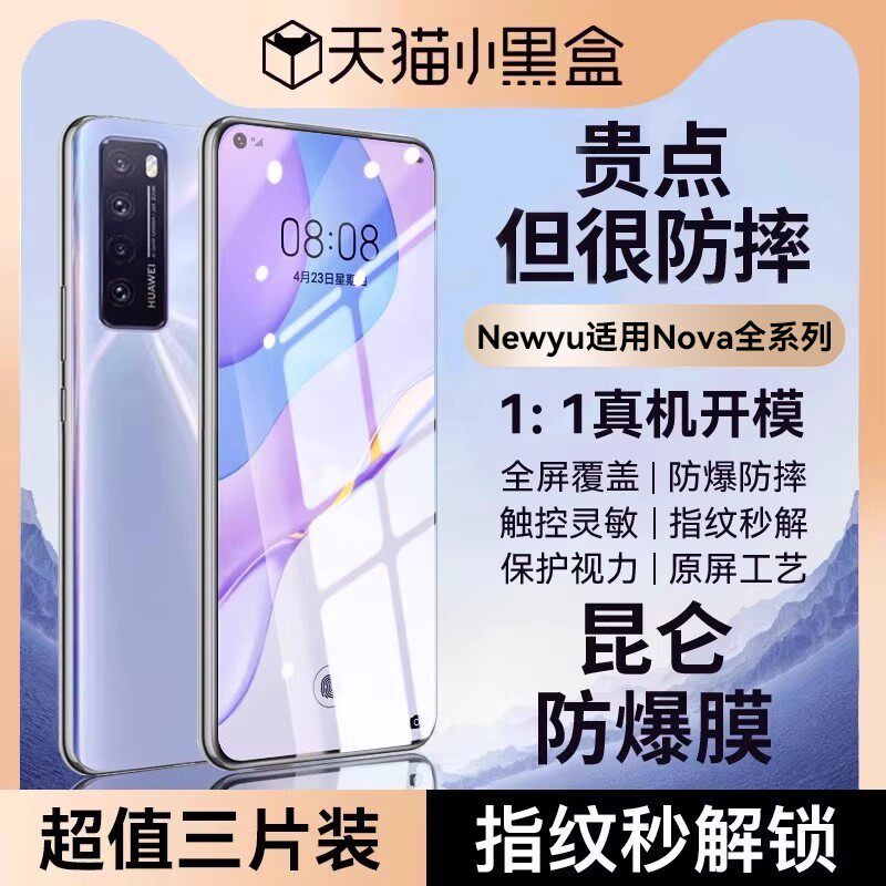 Newyu适用华为nova7钢化膜nova15手机nova12/13Pro膜nova13/10/9/8/5iz全屏nava6se曲屏nova14防pro窥ultra4e
