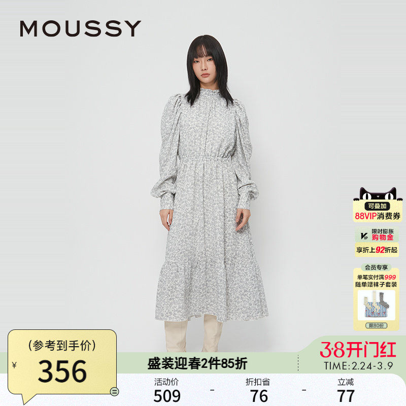 MOUSSY秋季新品法式田园风花边立领碎花连衣裙028HAZ30-1331