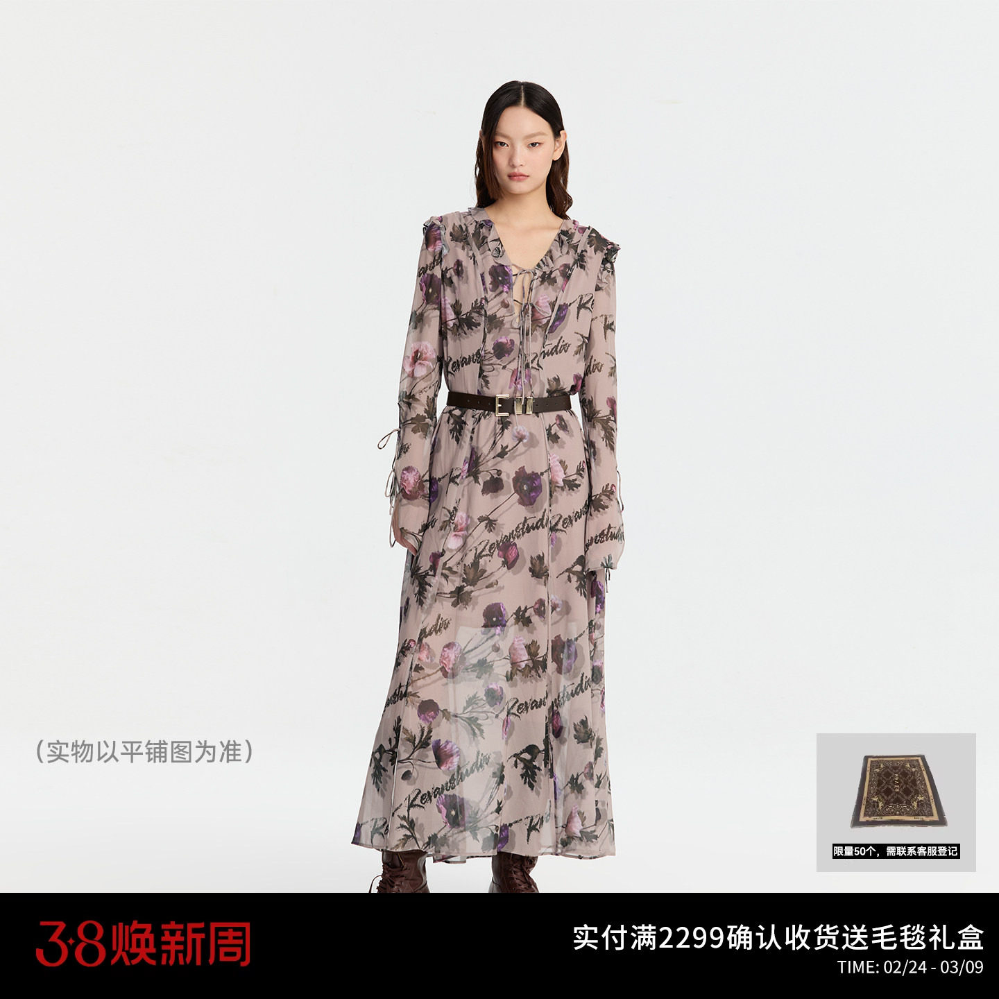 REVAN芮范设计师款浪漫咖色碎花连衣裙RM91101142