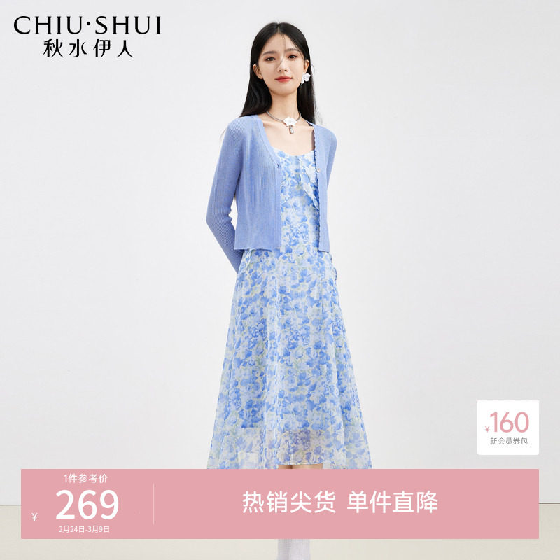 秋水伊人气质碎花连衣裙女两件套套装2026春季新款吊带裙套装裙子