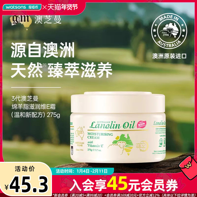 gm澳芝曼澳洲绵羊油乳液面霜滋润维e霜身体乳原装进口保湿大白罐