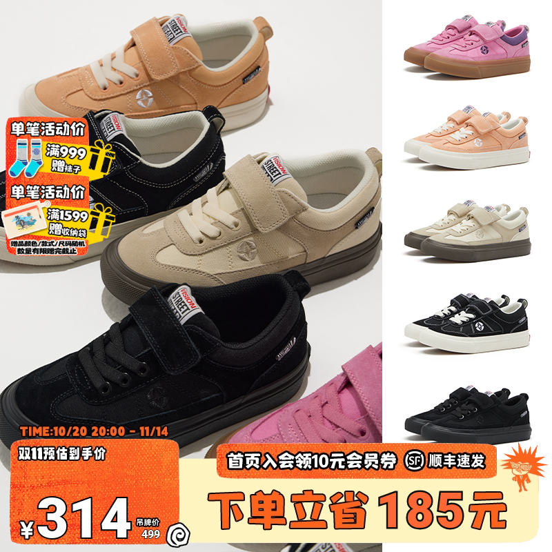 VS儿童帆布鞋低帮休闲鞋男童板鞋魔术贴中大童运动鞋女童滑板鞋秋