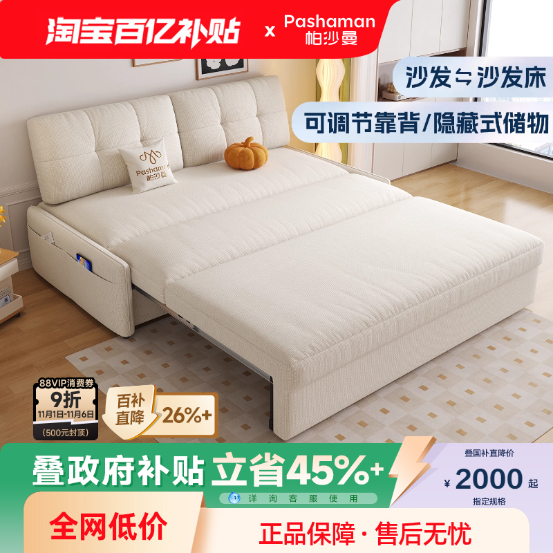 帕沙曼 布艺沙发储物小户型客厅奶油风可调节折叠伸缩两用沙发床