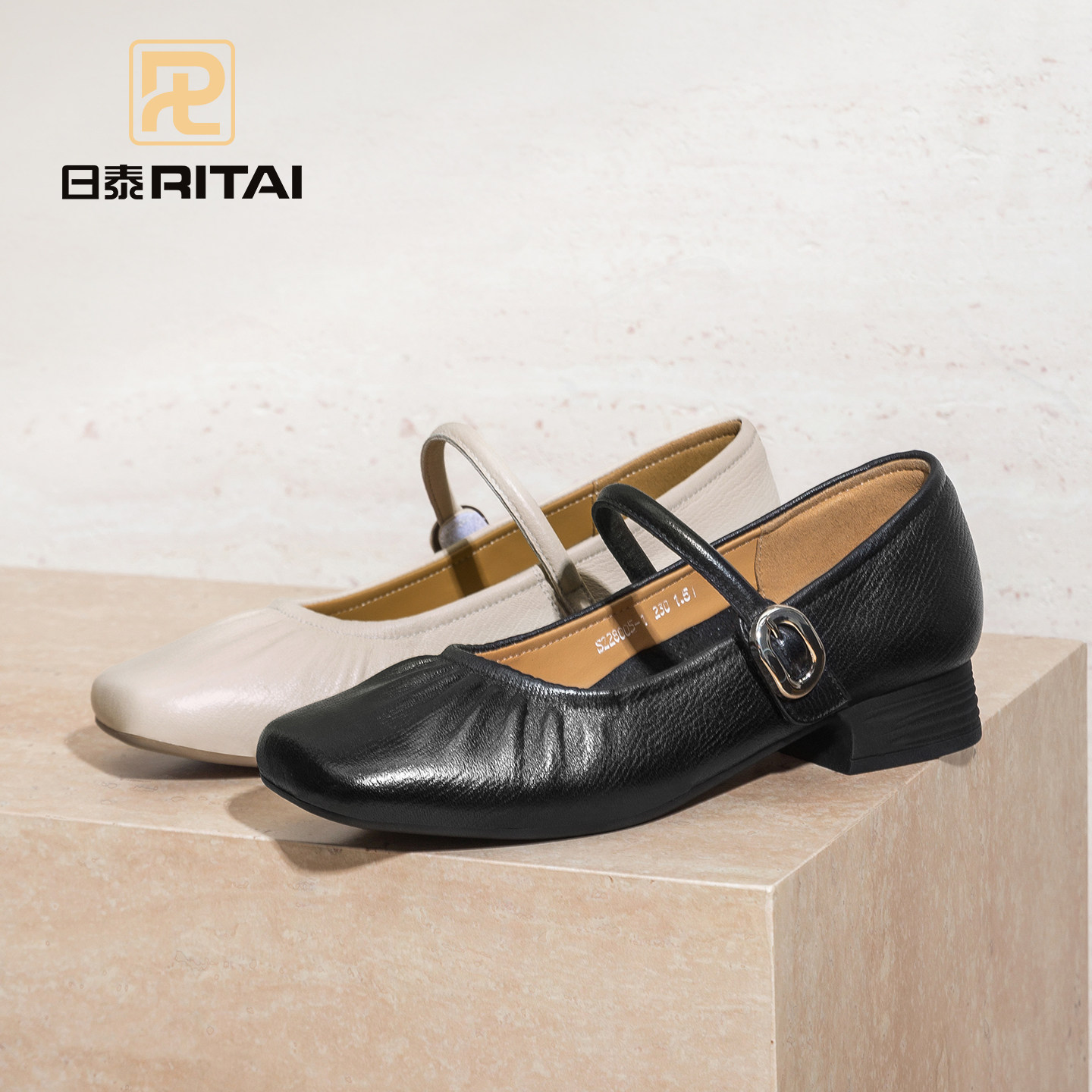 日泰女鞋真皮春季新款气质一字扣玛丽珍鞋女软面羊皮舒适粗跟单鞋