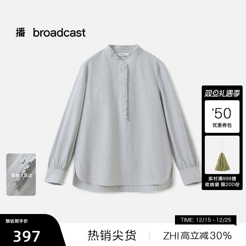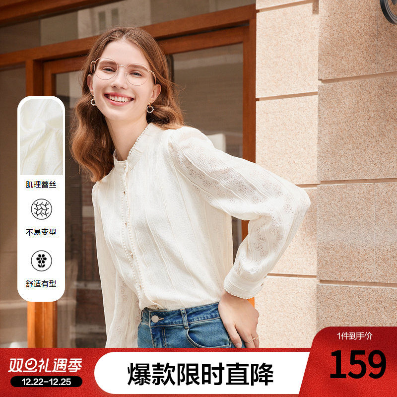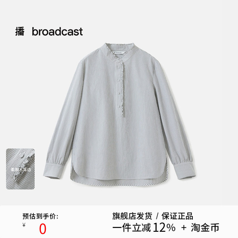 【播奥莱】播花边立领衬衫女25秋休闲宽松通勤长袖上衣DDS3HD5052