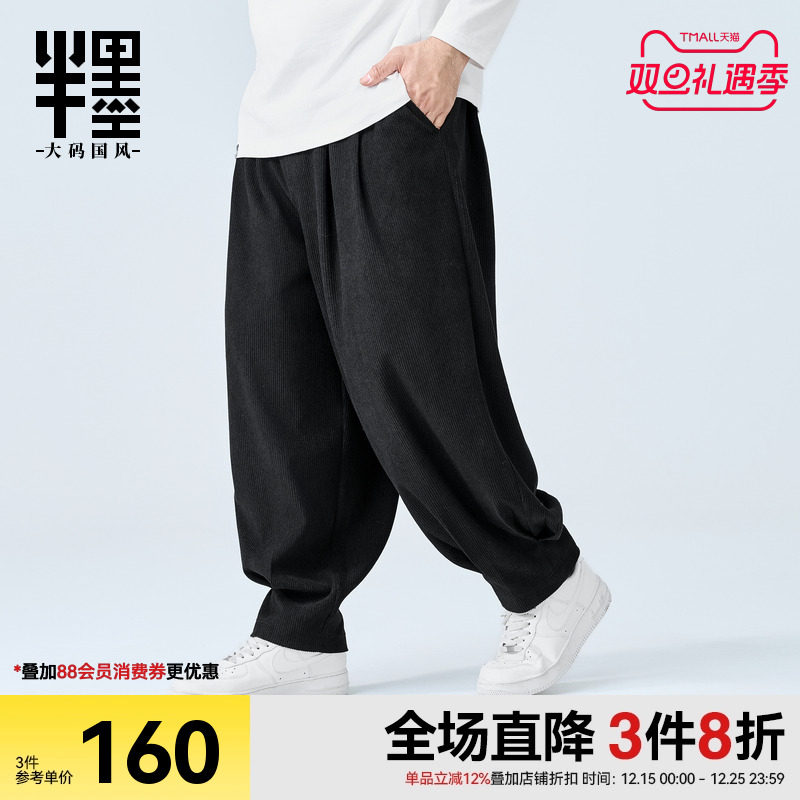 半墨大码男装阔腿灯笼裤男士2025秋季新款宽松加肥加大肥佬休闲裤