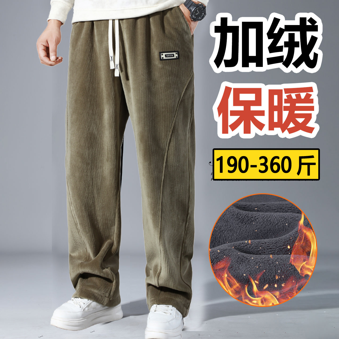 冬季灯芯绒裤子男士秋季加肥加大码男裤加绒加厚卫裤男直筒阔腿裤