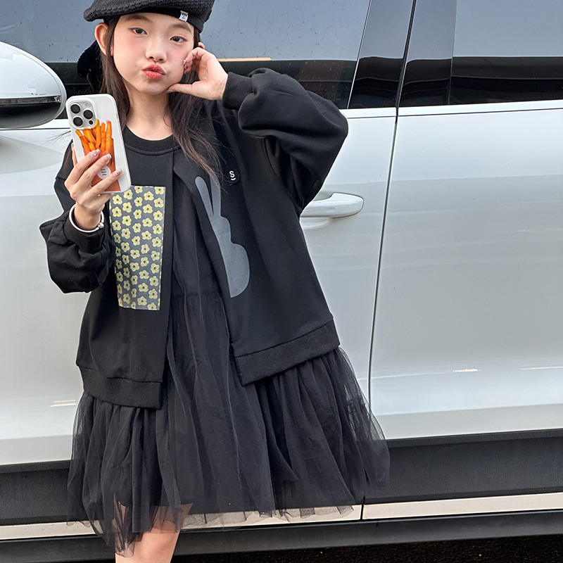 女童裙子秋装2025新款儿童连衣裙秋季中大童卫衣裙春秋女孩公主裙