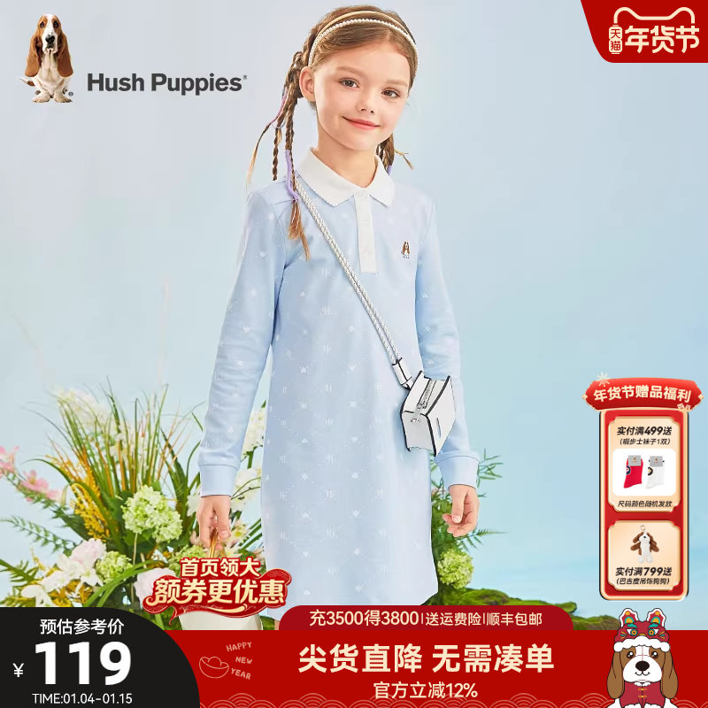 暇步士童装女童连衣裙春秋装新款儿童长袖裙子大童娃娃领Polo裙