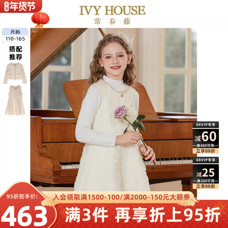 IVY HOUSE常春藤童装女大童连衣裙春秋季新款 玫瑰小香风裙子外套
