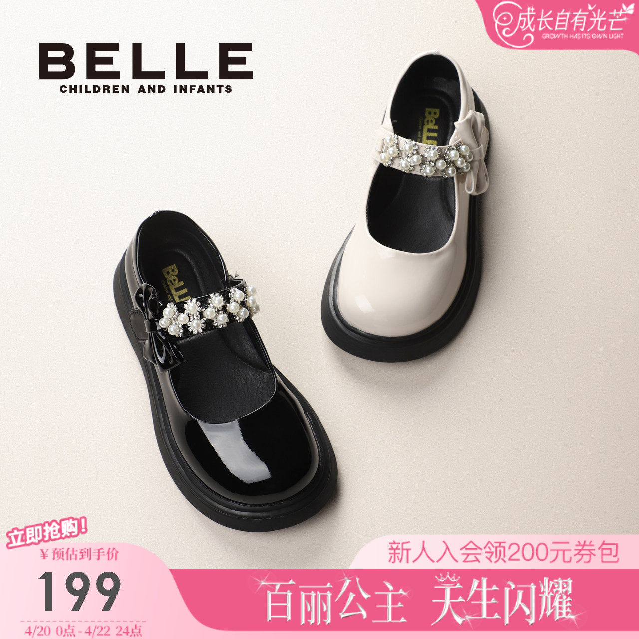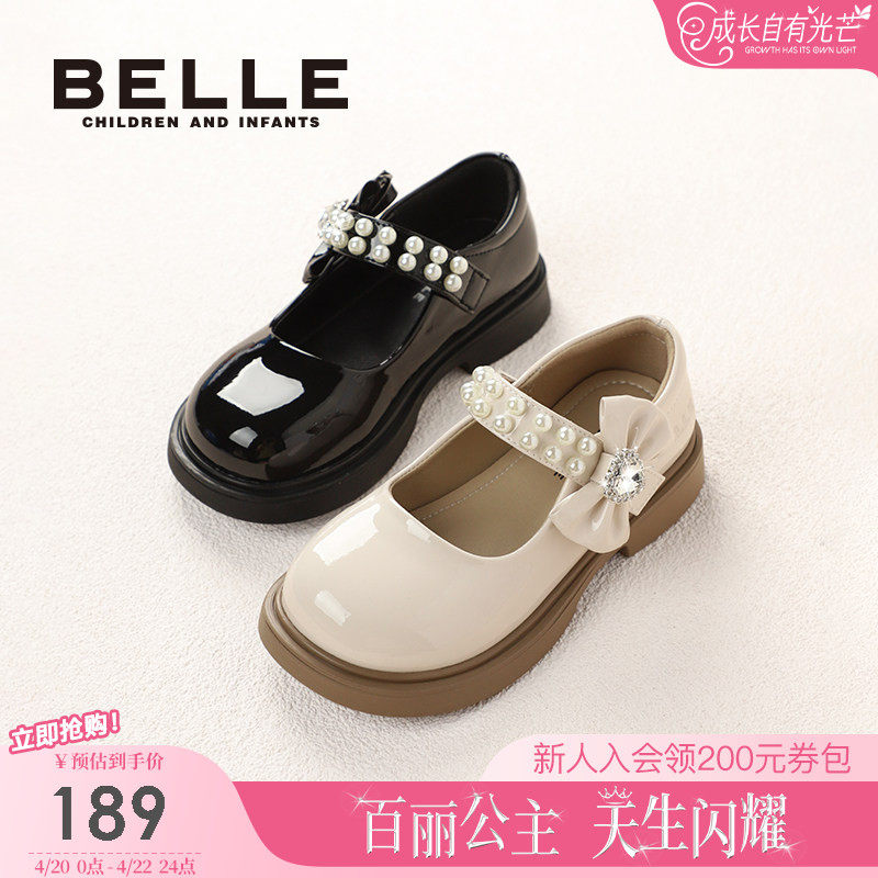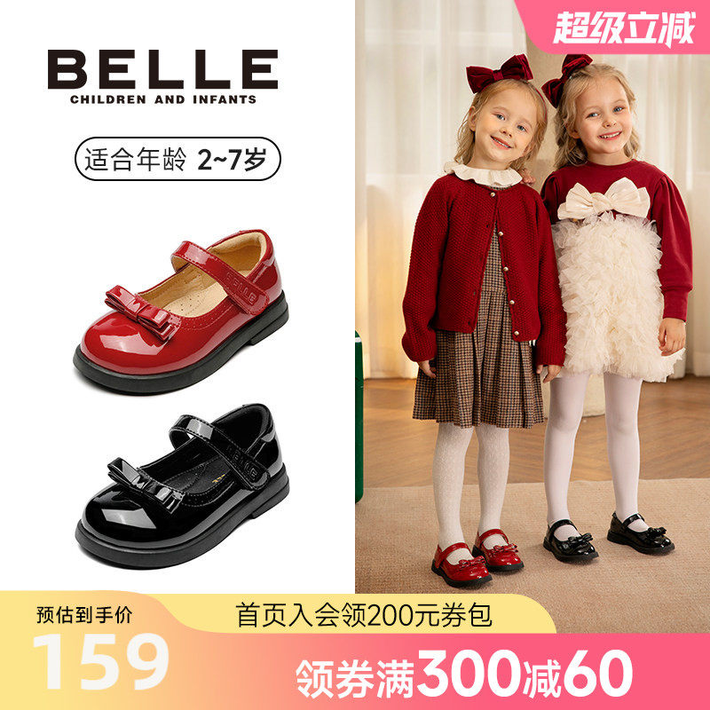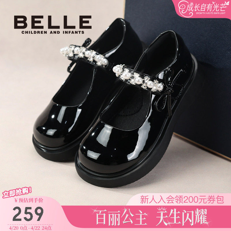 百丽童鞋女童黑皮鞋学步宝宝鞋春季新款儿童时尚单鞋小女孩公主鞋