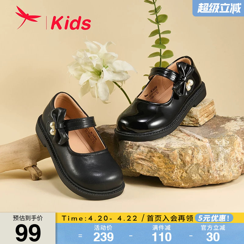 红蜻蜓女童鞋子儿童黑色小皮鞋公主软底单鞋2026新款女孩乐福春夏