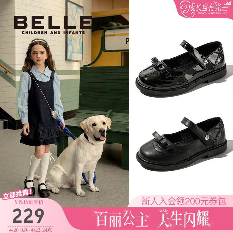 百丽童鞋女童黑皮鞋2026春季新款儿童演出鞋小女孩学生礼仪小皮鞋