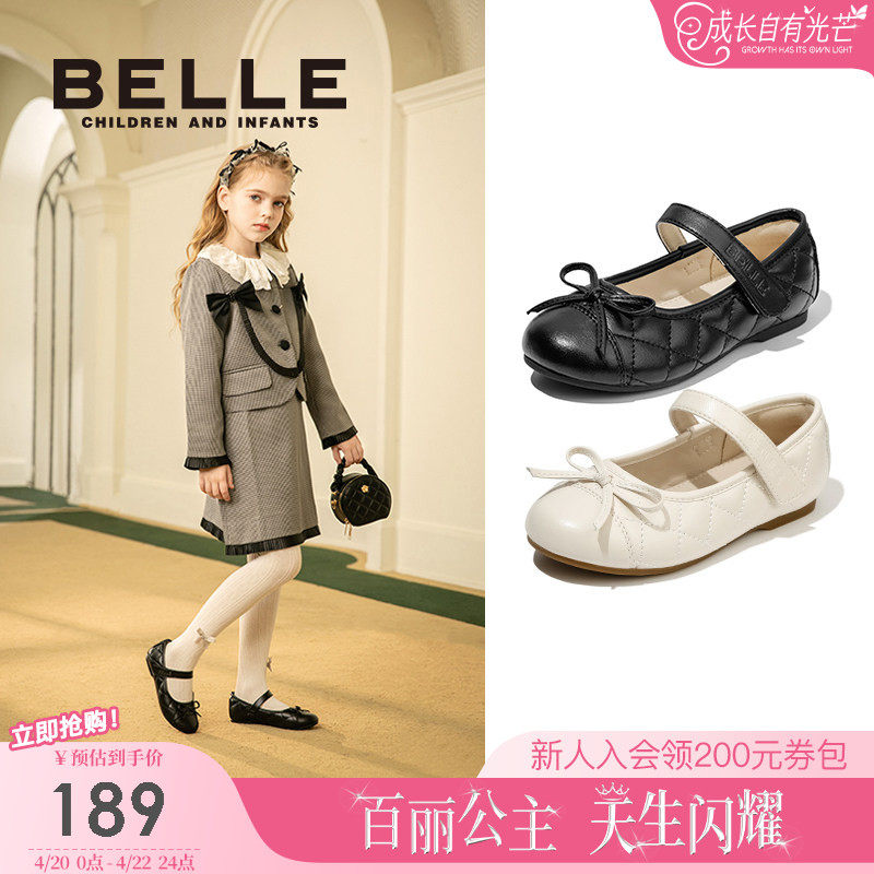 百丽童鞋女童黑色皮鞋春季2026新款软底鞋子小女孩公主鞋宝宝单鞋