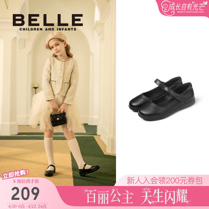 百丽童鞋女童黑色皮鞋春夏2026新款女宝玛丽珍公主单鞋演出小黑鞋