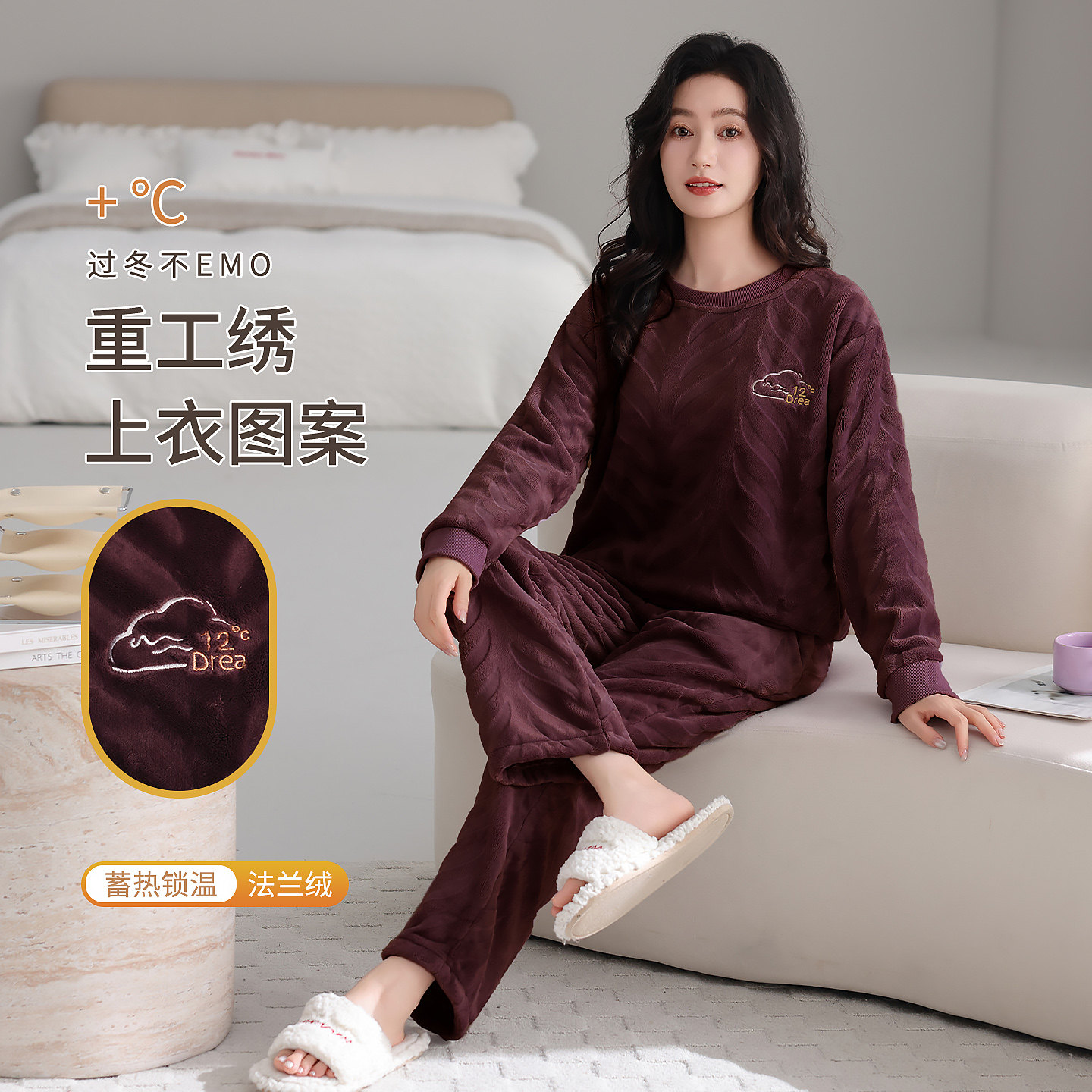冬季珊瑚绒睡衣女套头加绒加厚保暖2025新款冬天法兰绒家居服套装