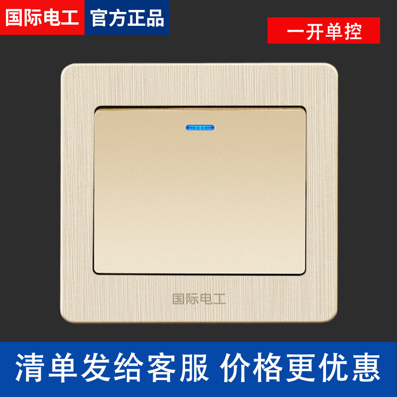国际电工开关按钮面板金色86型单开单控家用插座1位2双控三四电灯