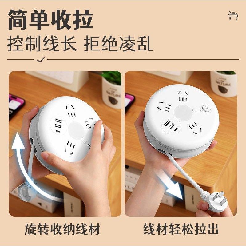 家用插座带线可伸缩插排多功能USB排插线板多孔插板插头拖接线板