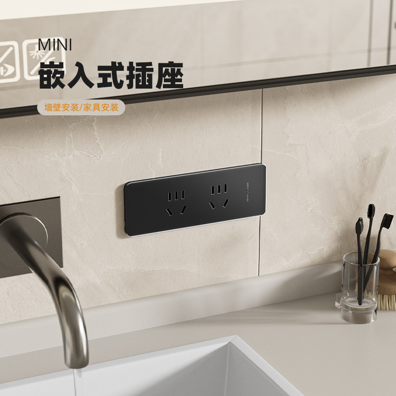 墙壁嵌入式五孔插座面板10A桌面内嵌式多孔排插隐藏迷你家用插座