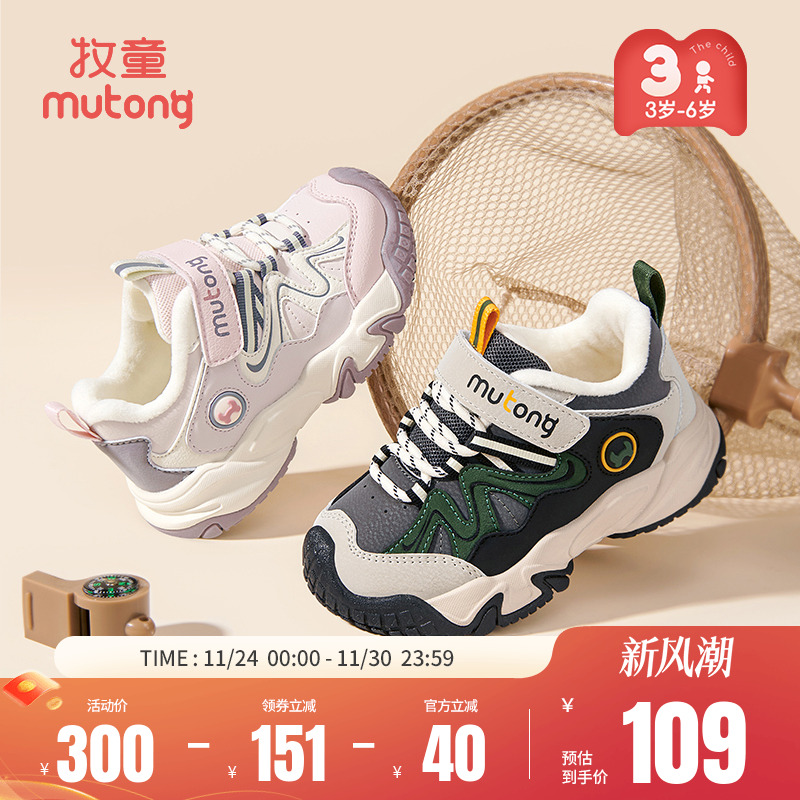 牧童儿童运动鞋2025秋冬新款男童鞋女童保暖鞋轻便减震户外休闲鞋
