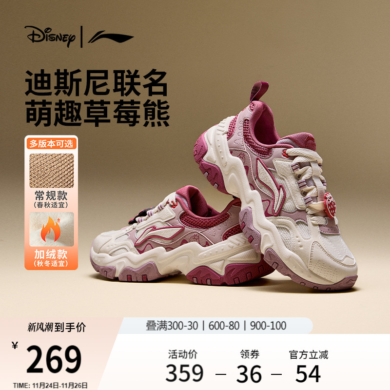 李宁红糖迪士尼草莓熊联名丨休闲鞋女25秋冬新款加绒老爹鞋运动鞋