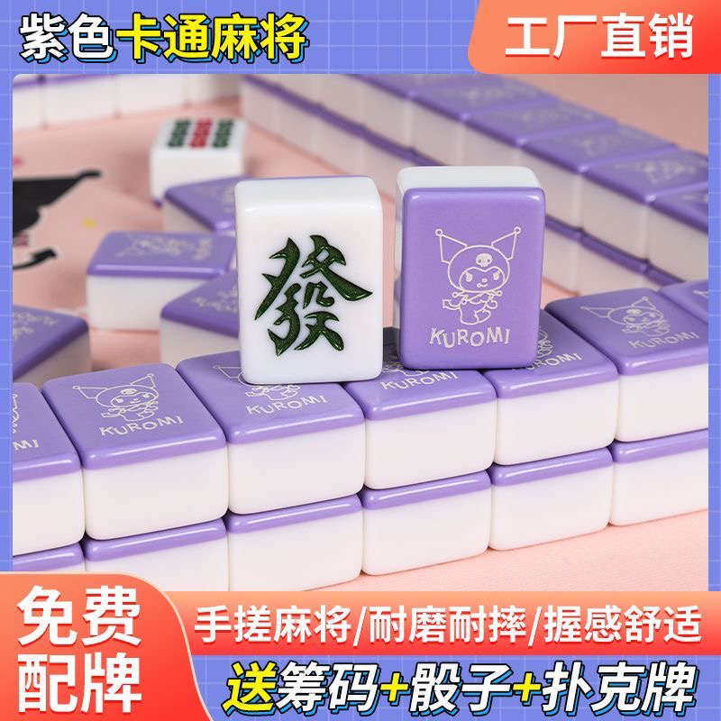 紫色库洛米麻将 私人定制 网红潮牌家用手搓中大号定制送礼麻将牌