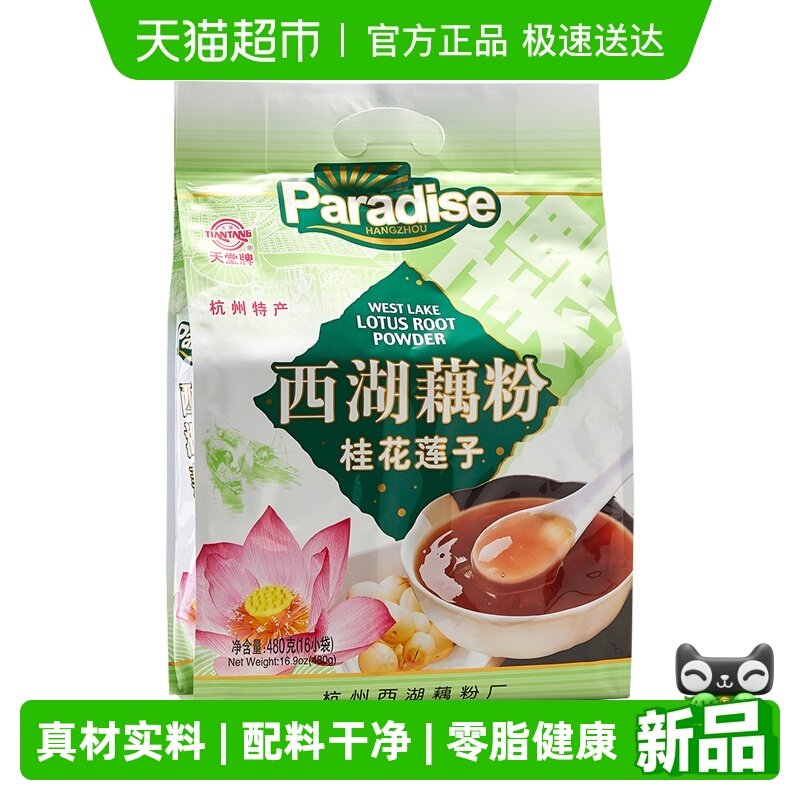 天堂西湖藕粉杭州特产正宗无糖无添加原味早餐小袋装莲藕粉羹480g