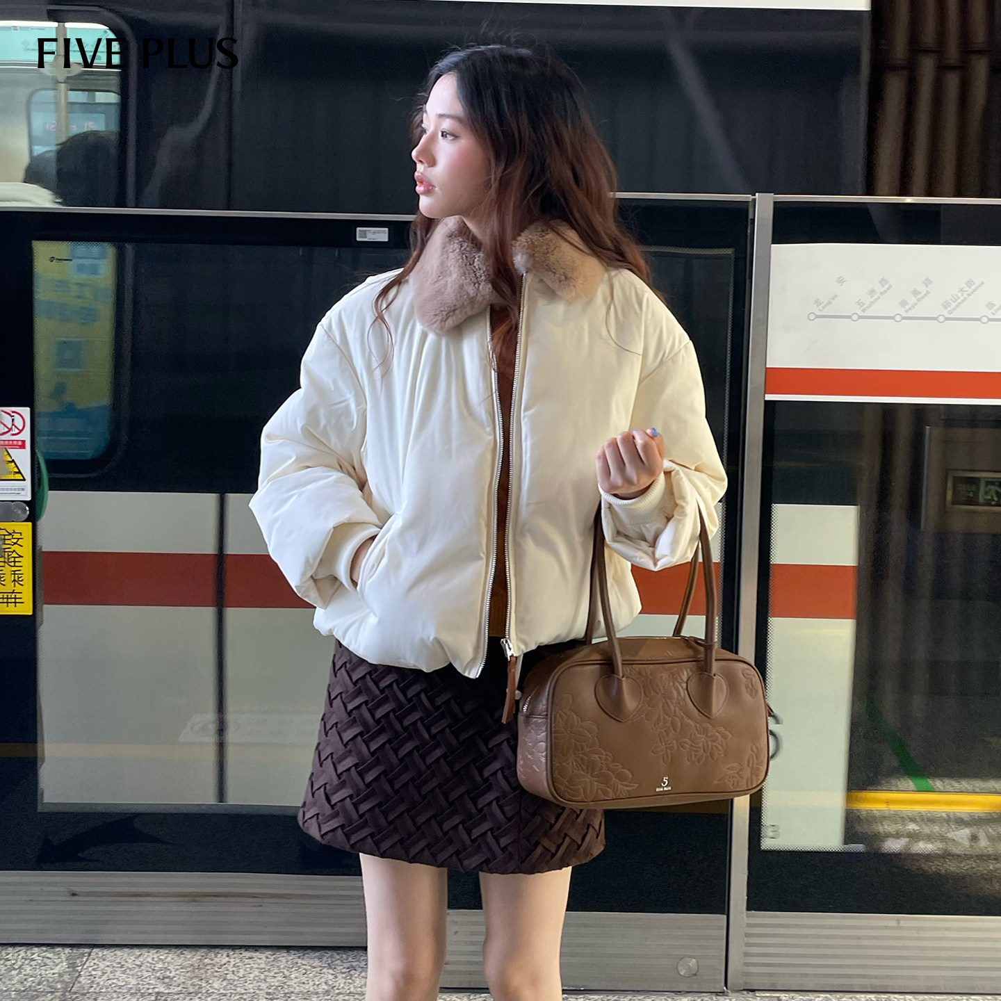 FIVE PLUS羽绒美式复古设计感毛领休闲鸭绒面包服2025新款女冬装